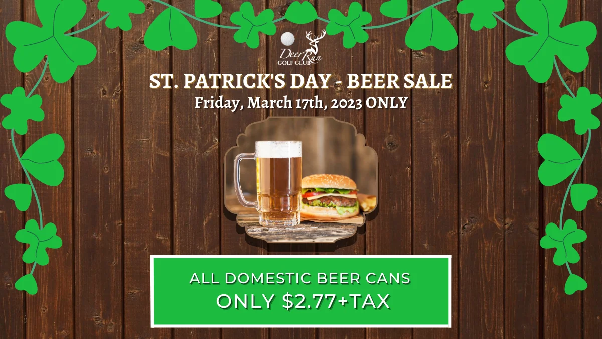 Join us for our St. Patrick's Day Beer Sale! Friday, March 17th, 2023, ONLY!🍻 ALL DOMESTIC BEER CANS ARE $2.77 +TAX